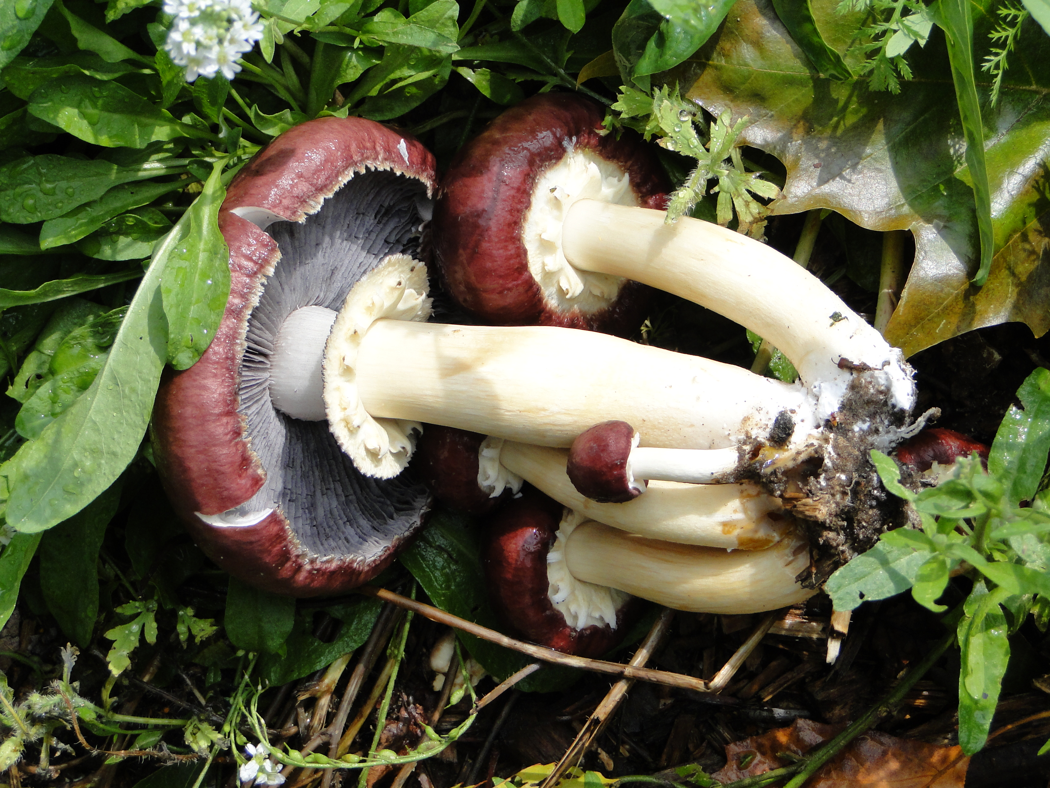 Paddestoelen losgelaten uit de grond.