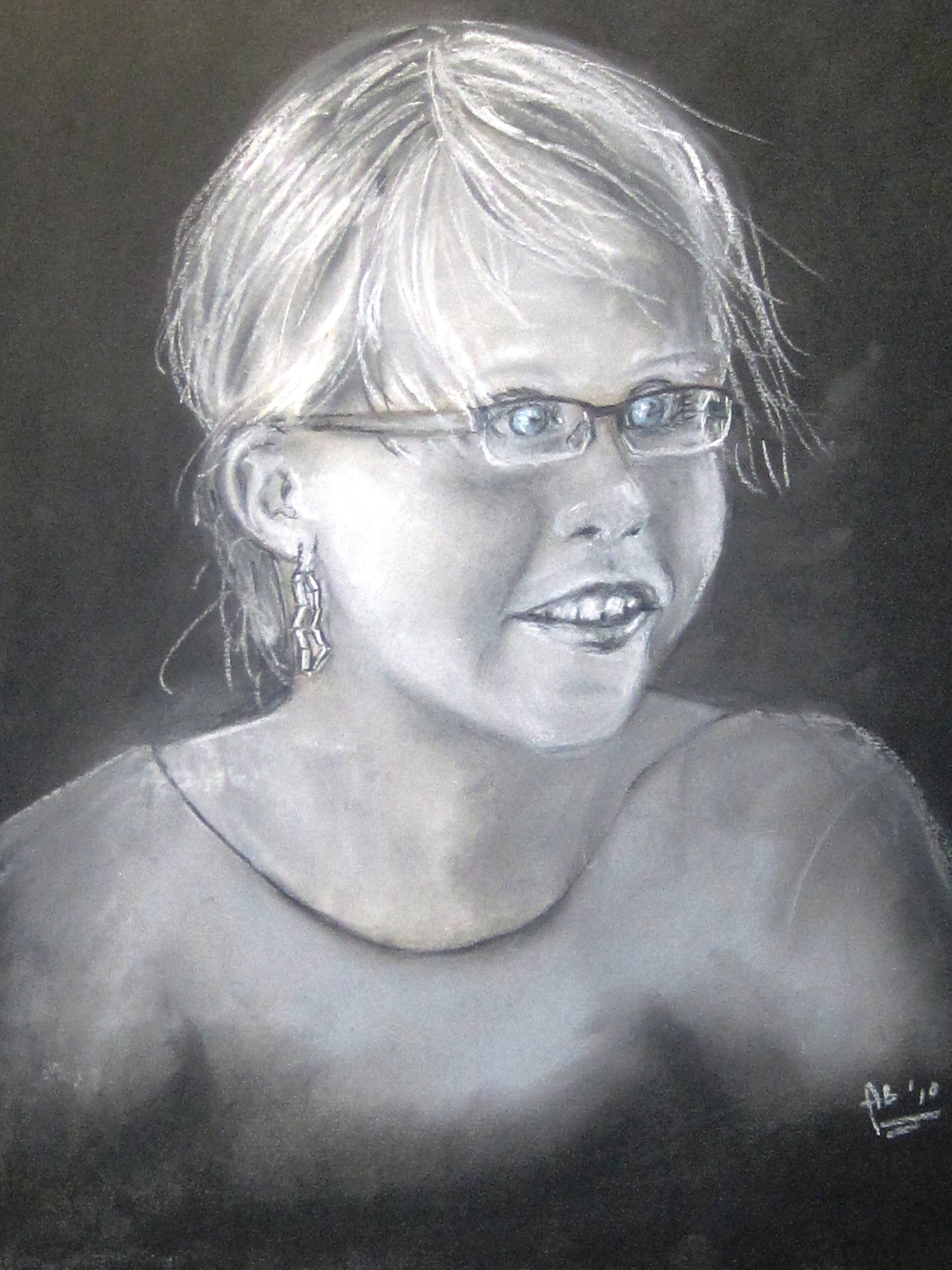 Meisje Kind Portret Gezicht Houtskool Hoofd Pastelkrijt