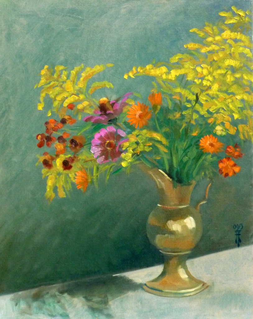 Bloemstuk ter verwelkoming, olieverf op linnen