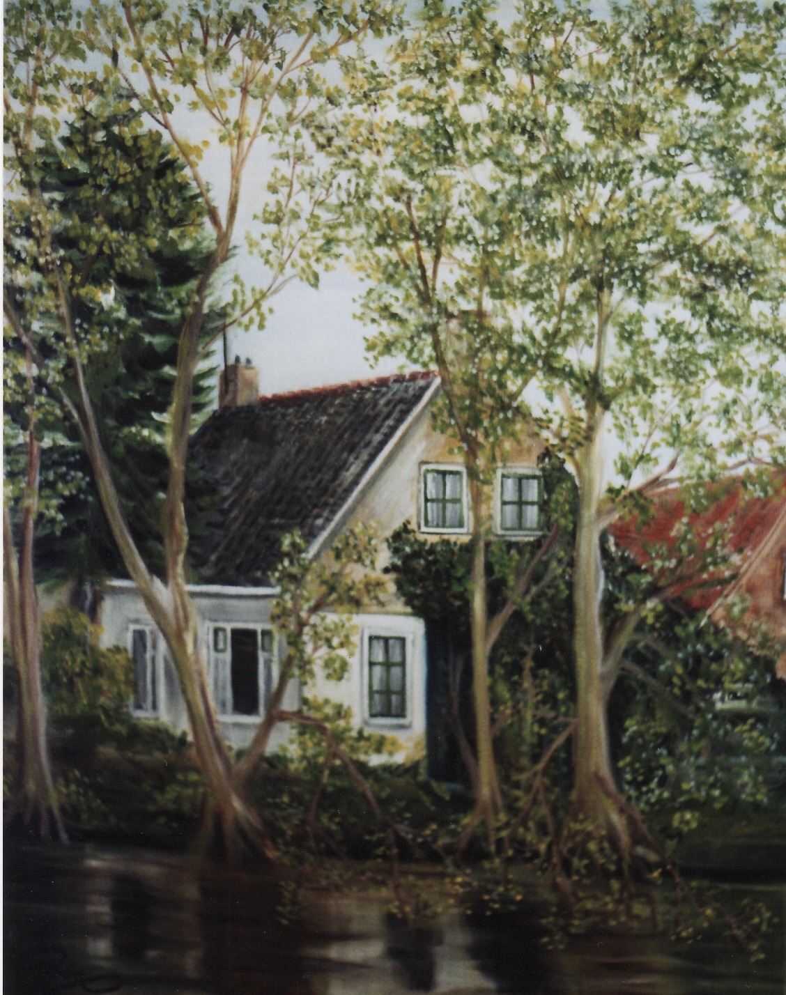 Water Realistisch Olieverf Green House Trees Vaart Realistic Village Dorpsgezicht Makkum Turfmarkt Boomwal