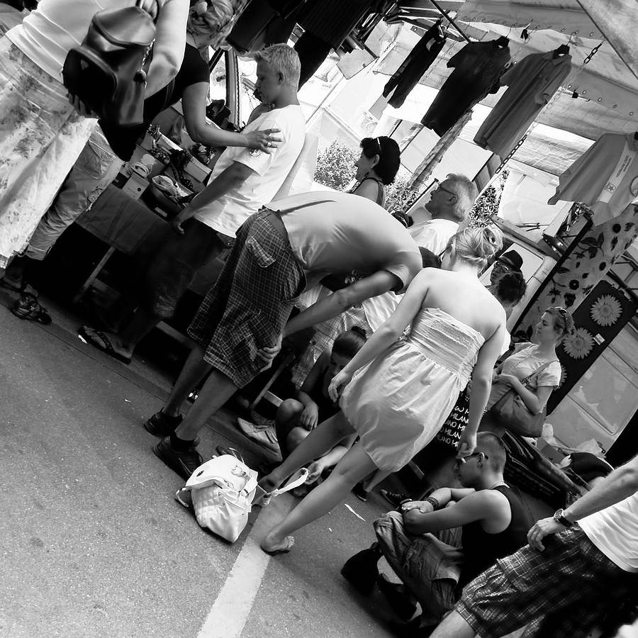 Mensen Vierkant People Markt Square Market B/w Z/w Straatfotografie Streetphotography Shoefitting Schoenenpassen