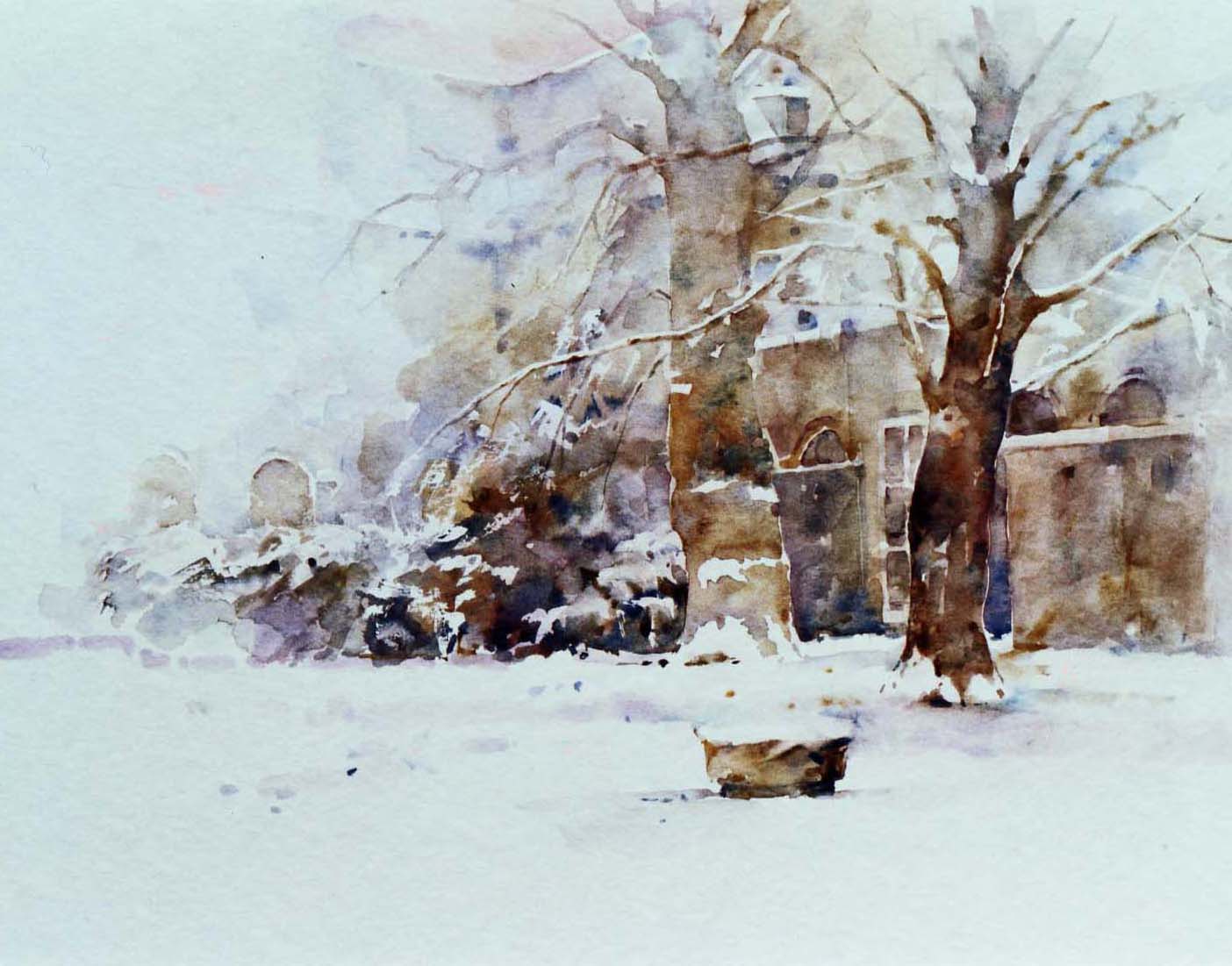 Aquarel Museum Winter Waterverf Plataan Dordrecht