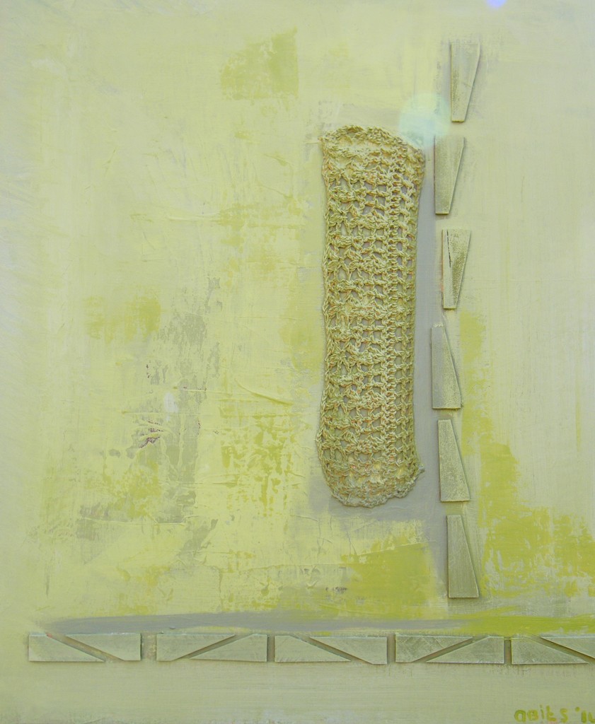 Acryl op doek, met haakwerken en spanhoutjes erin!