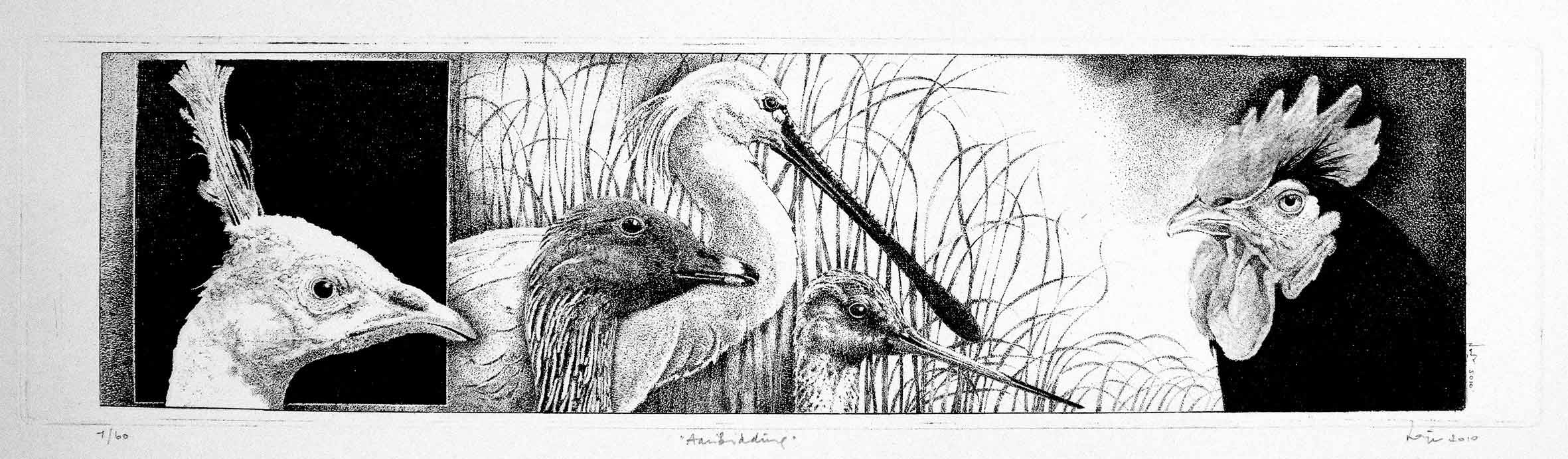 De aanbidding is een lijnets met een oplaag van 60. De titel is ontstaan omdat de drie dieren in het centrum me dede denken aan de drie koningen.