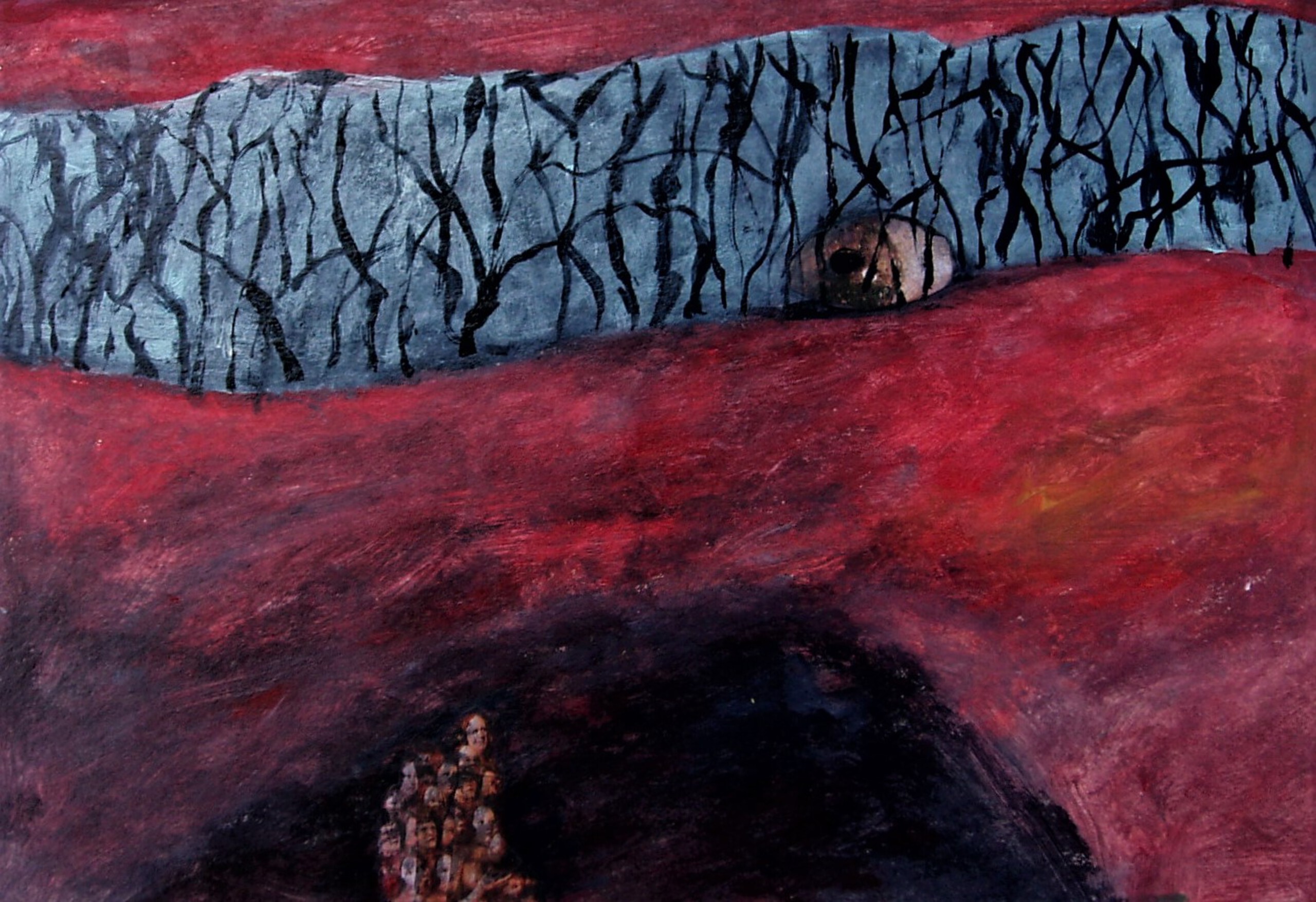 Mensen Rood Landschap Bomen Donker Oog Hol Kijken
