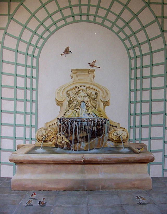 Nature Trompe L'oeil Mural Painting Italian Garden Fountain Birds
