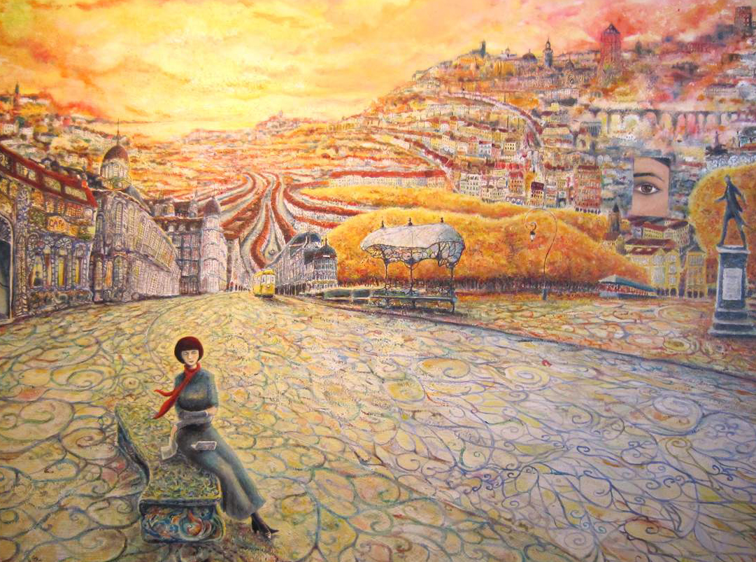 Woman Street Eye Portugal Seated Laptop Park Cityscapes Streetcar Sidewalk