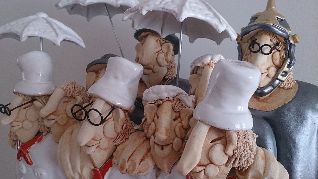 figuren van spreekwoorden gezegdes uitdrukkingen en opdrachten in keramiek uitgebeeld