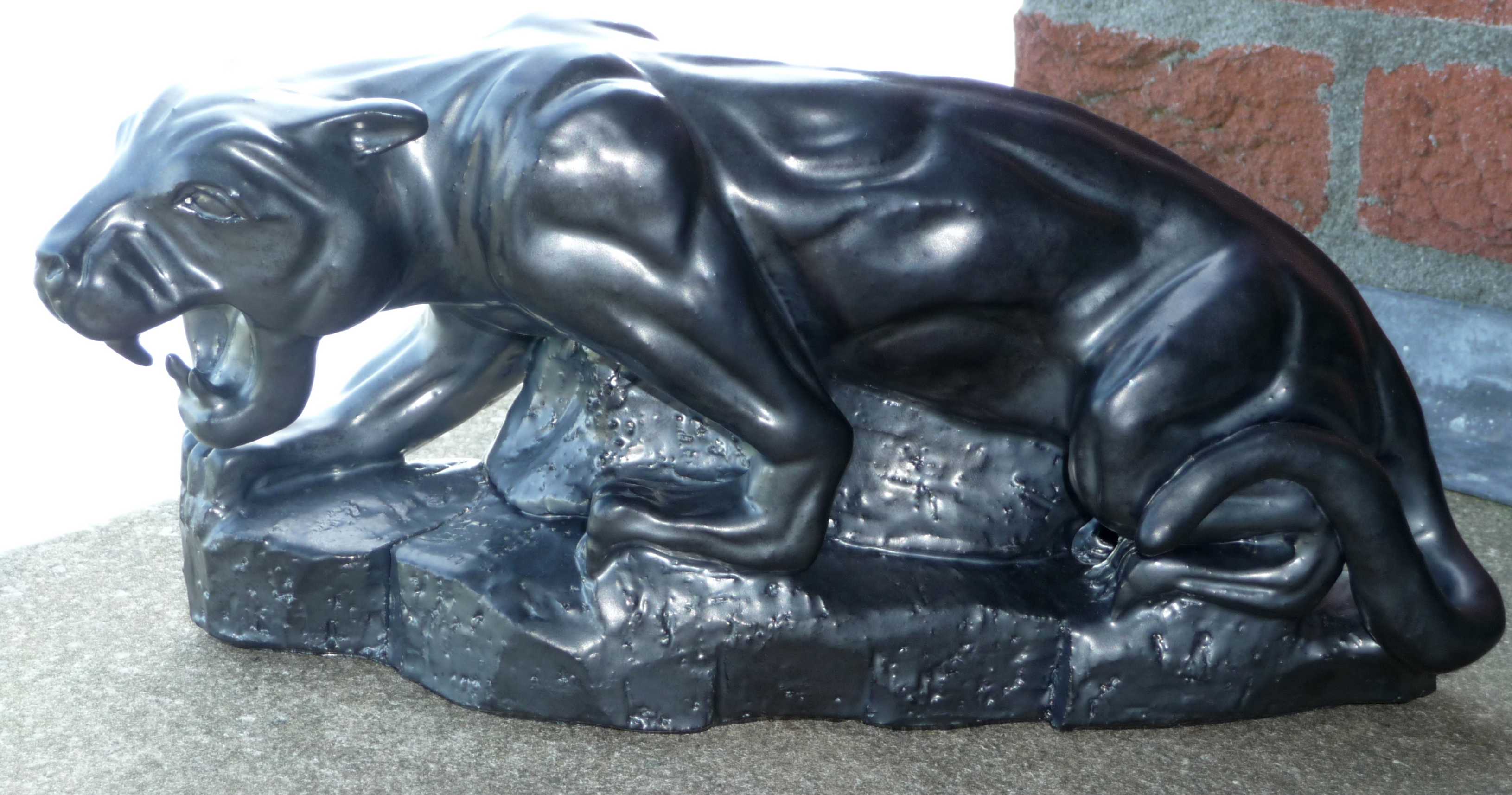 panter, handgevormd, klei, gestookt op 1060º, tin glazuur zijdeglans