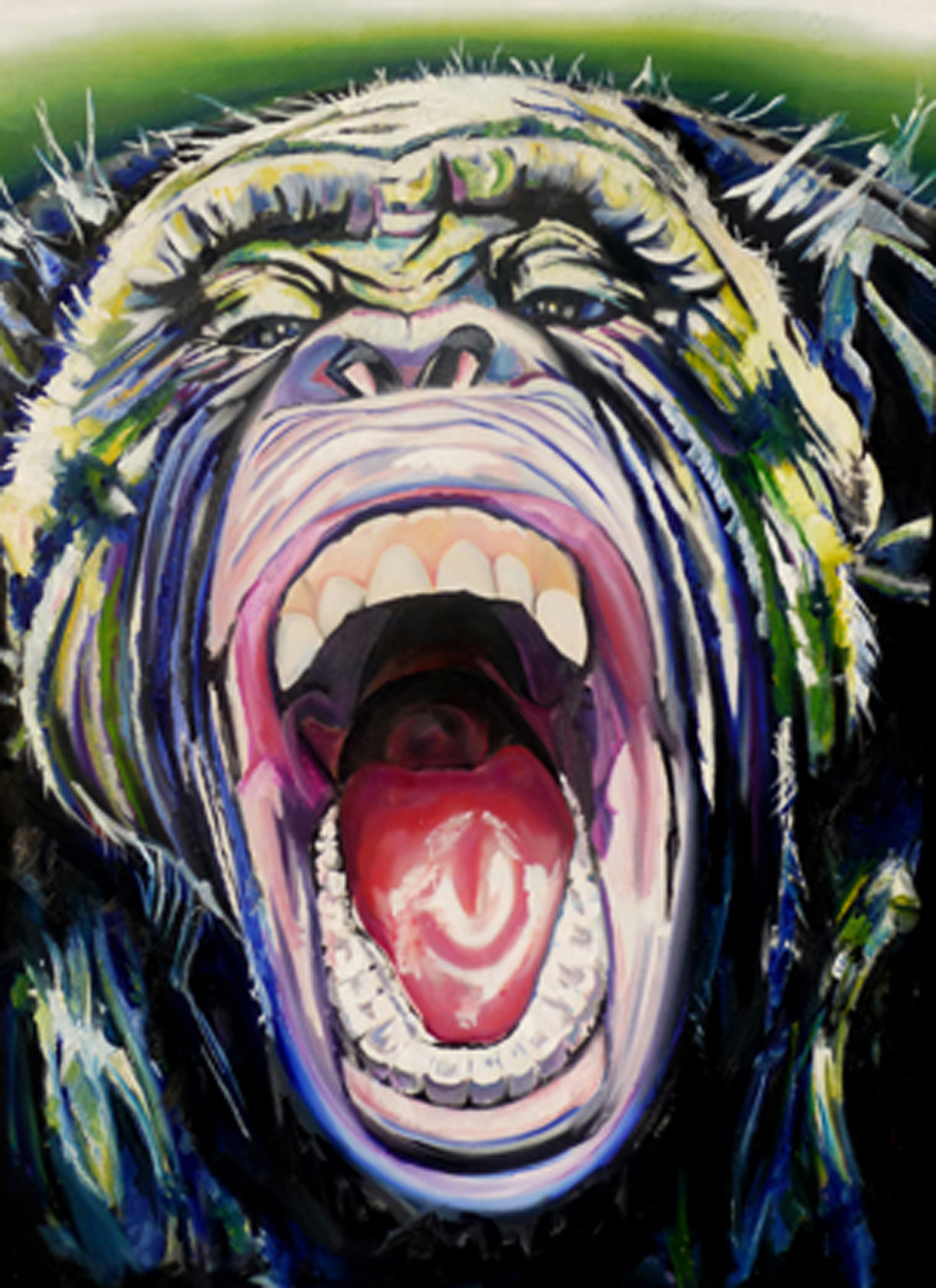 En schreeuwende aap realistisch geschilderd.