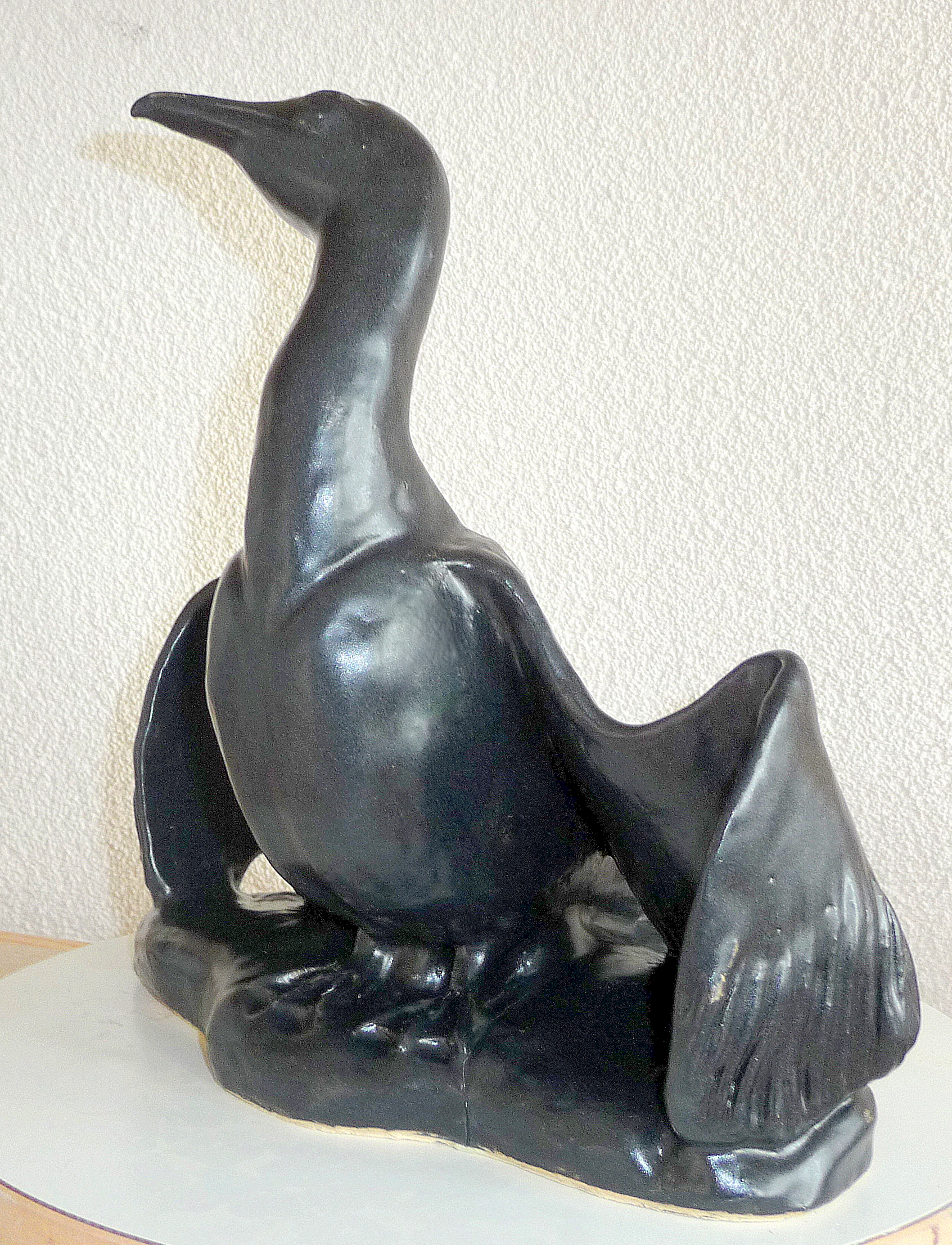 handgevormd beeld, klei, gestookt 1220º(weerbestendig), geglazuurd graniet-zwart, zijdeglans