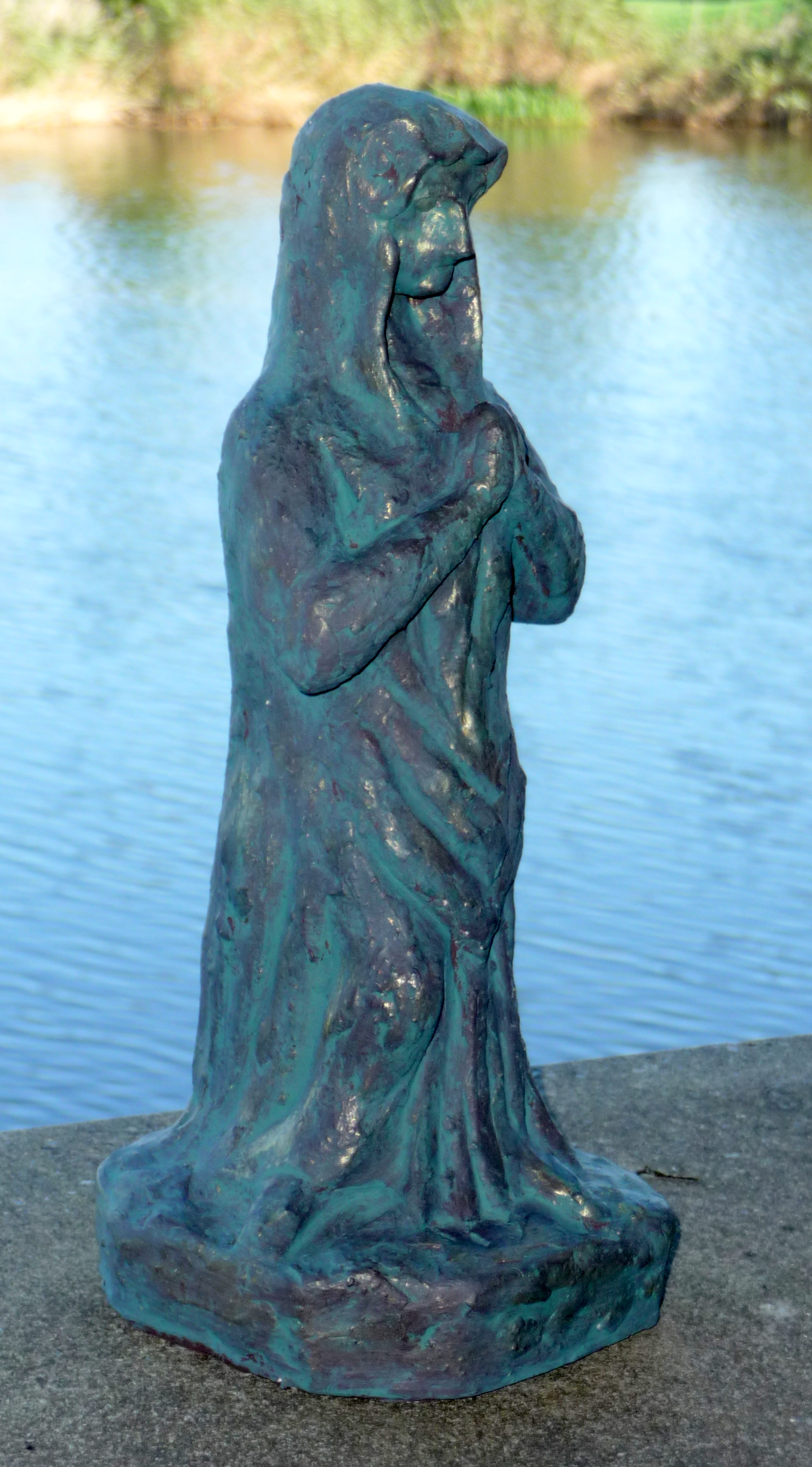 handgevormd beeld, klei, zomaar ontstaan, gestookt op 1060º, bronskleurig acrylverf beschilderd