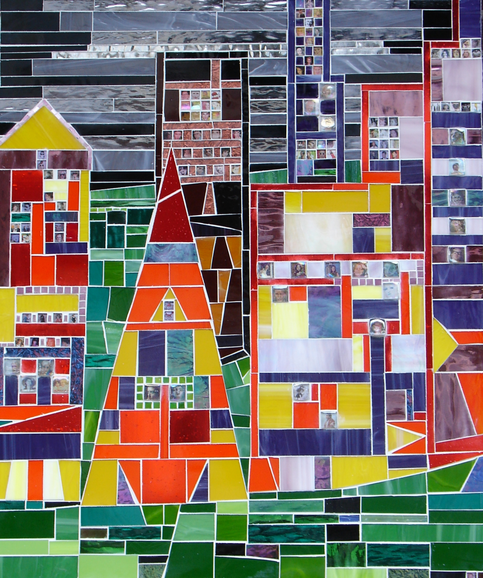 Grijs Mensen Oranje Geel Landschap Groen Glas Gezichten Lucht Kleur Mozaïek Stad Stadsgezicht Stadslandschap Cityscape Tijdsbeeld Townscape