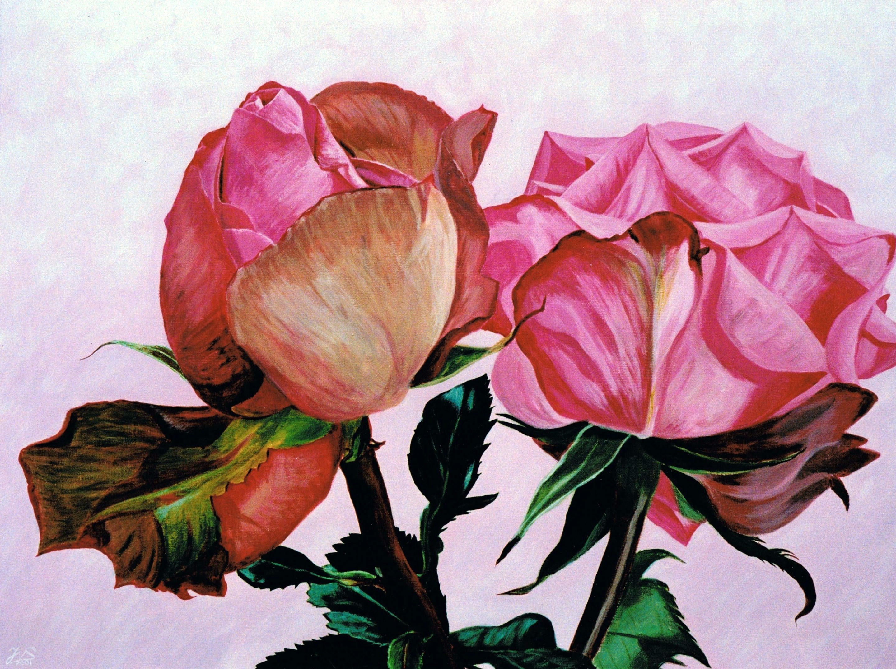 Wel of niet scheiden, rozen naar de natuur geschilderd.