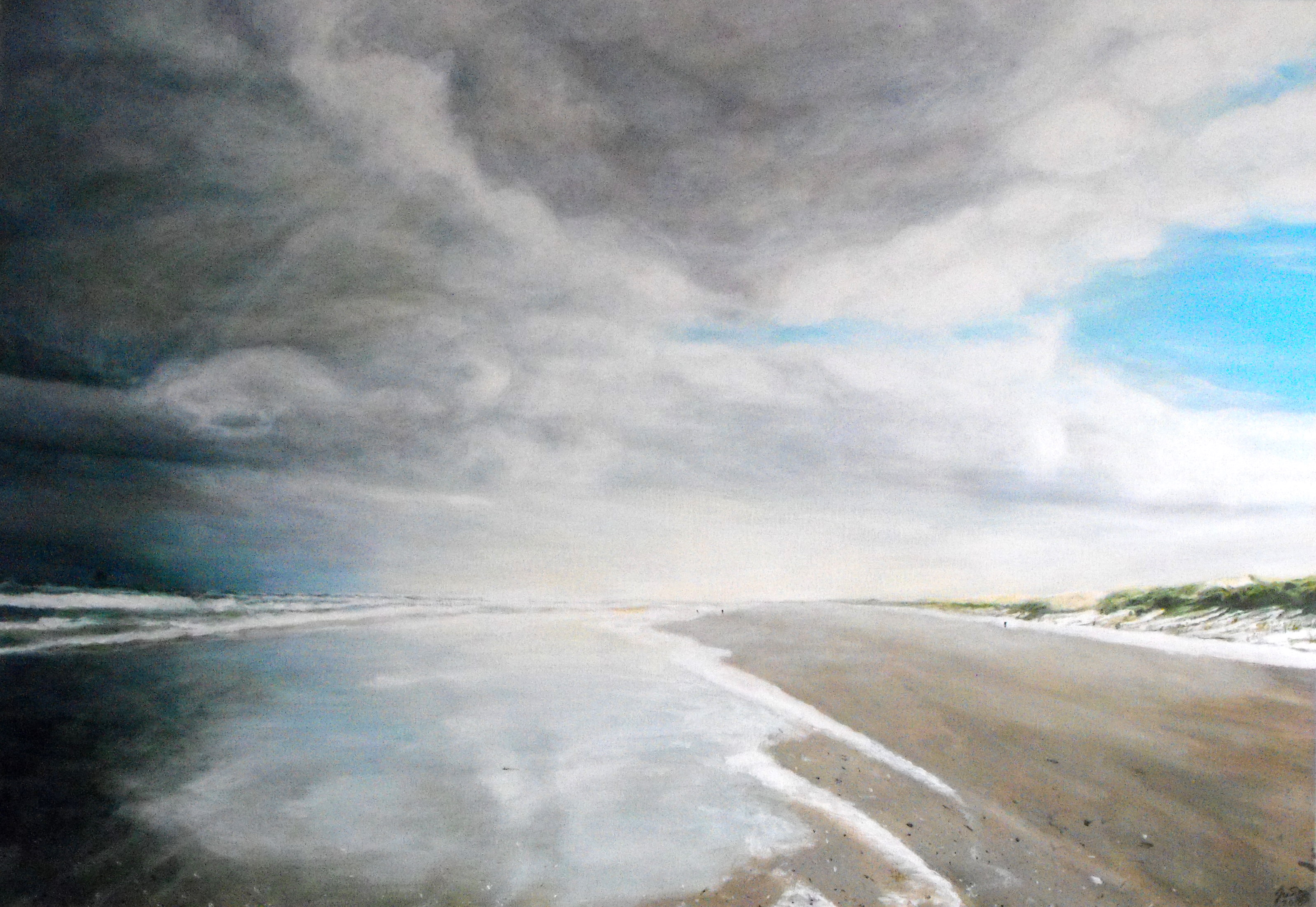 Zee Strand Landschap Acryl Wolken Realistisch Acrylic Lucht Holland Beach Air Landscape Seascape Weerspiegeling Clouds Linnen Zeegezicht Nederland Sea Eilanden Realistic Linen Reflection Isles