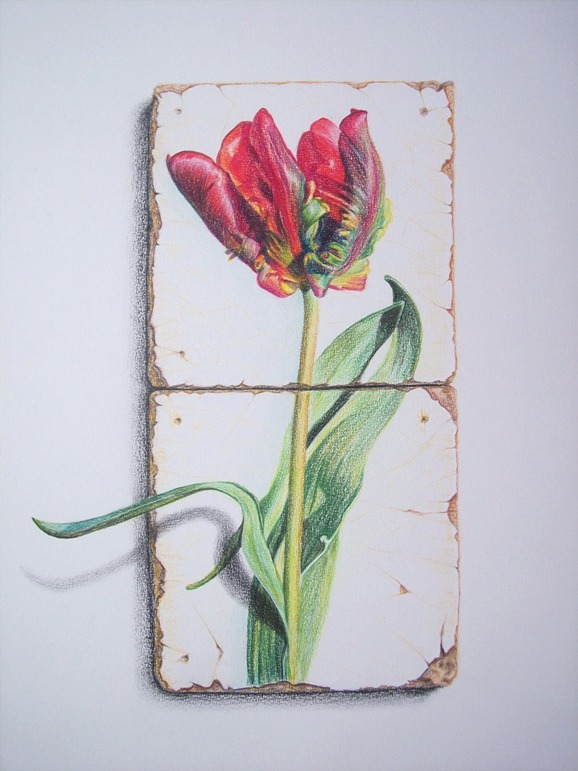 Tulp Tulpen Tekening Realistisch Drawing Tulip Tekenkunst Tekeningen Kleurpotlood Coloured Tegel Pencil Tulipa Tile Parkiettulp Rococo Twee-luik