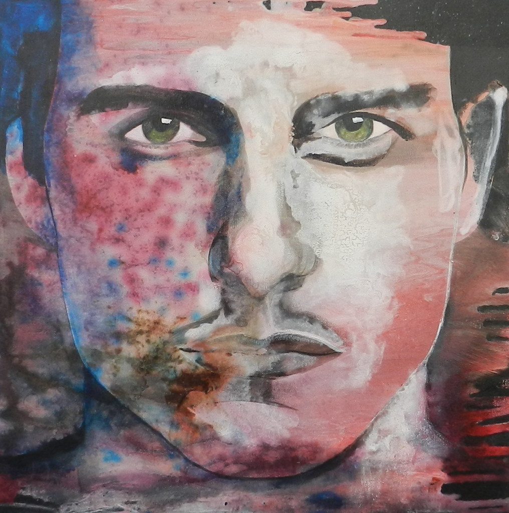 Portret van Tom Cruise, uitgevoerd in mixed media, op canvas.