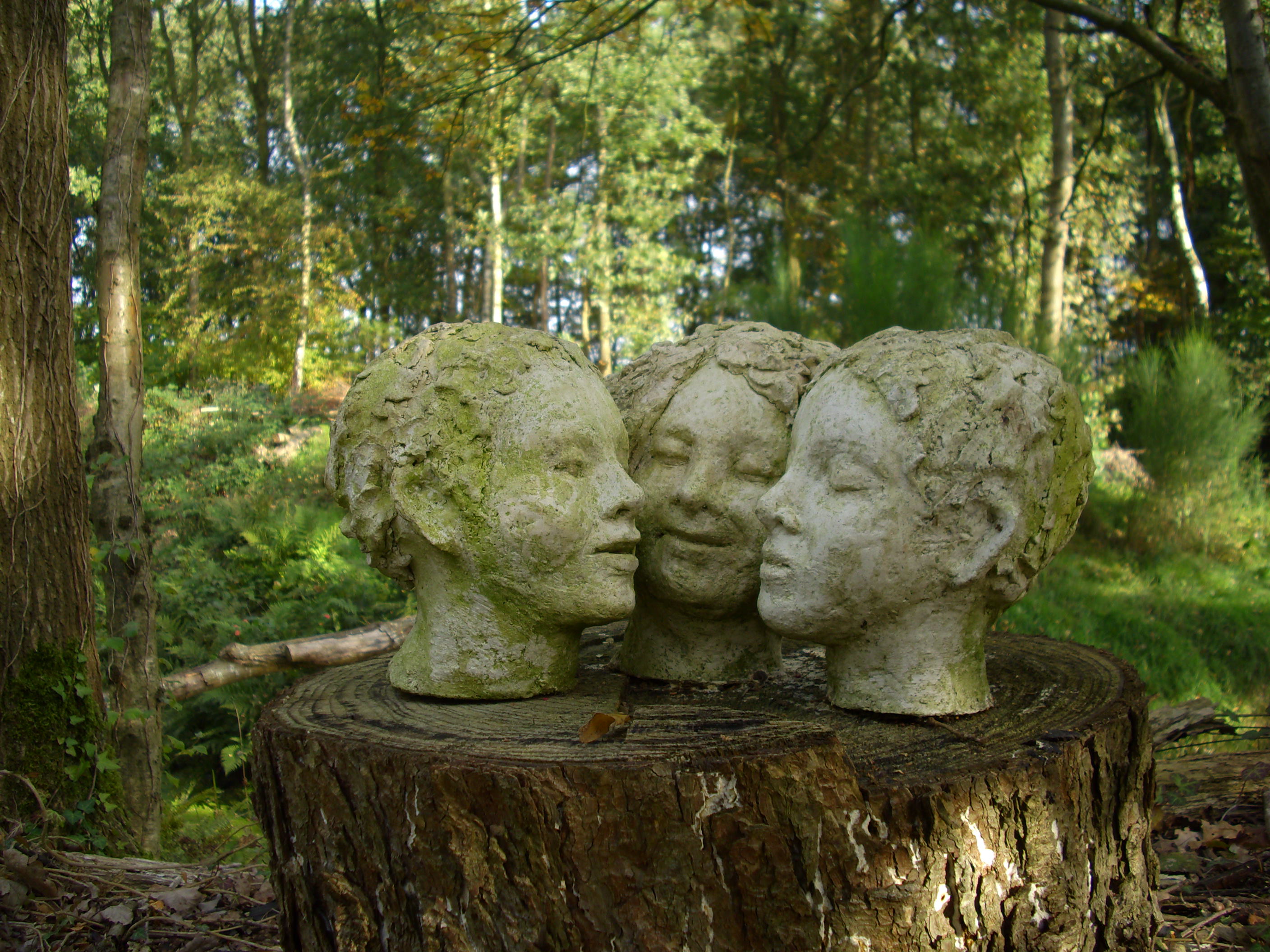 Grove witte chamotteklei, gekleurd met oxydes op sokkel van boomstam.