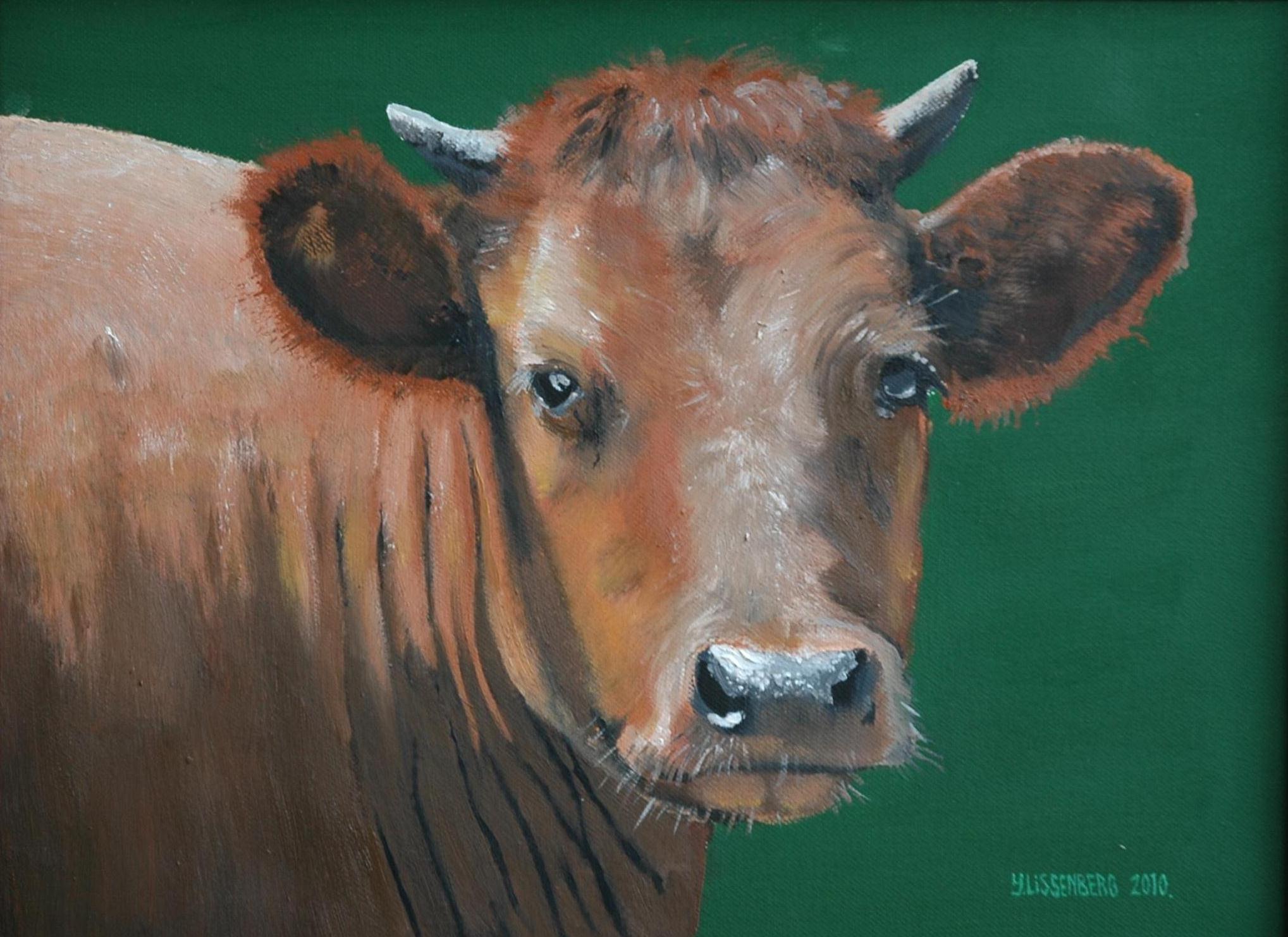 Rood Groen Portret Kop Koe Realistisch Olieverf Koeien Lakenvelder