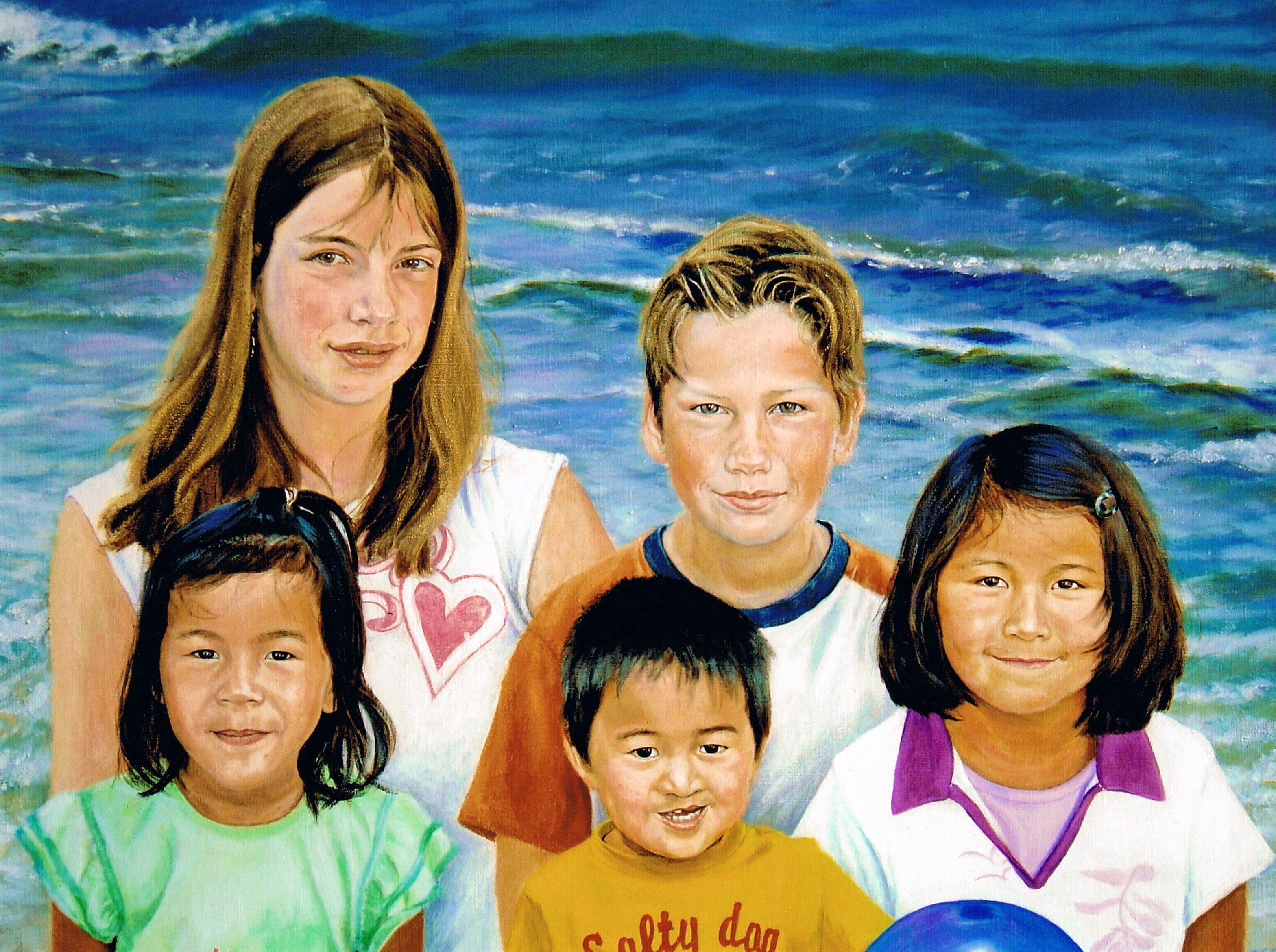 Zee Acryl Portret Realistisch Portrait Acrylic Kinderen Linnen Kinderportret Sea Realistic Children Linen Portretopdracht Portretschilder Kleinkinderen Grandchildren Portrait-painter Portrait-order Children-portrait