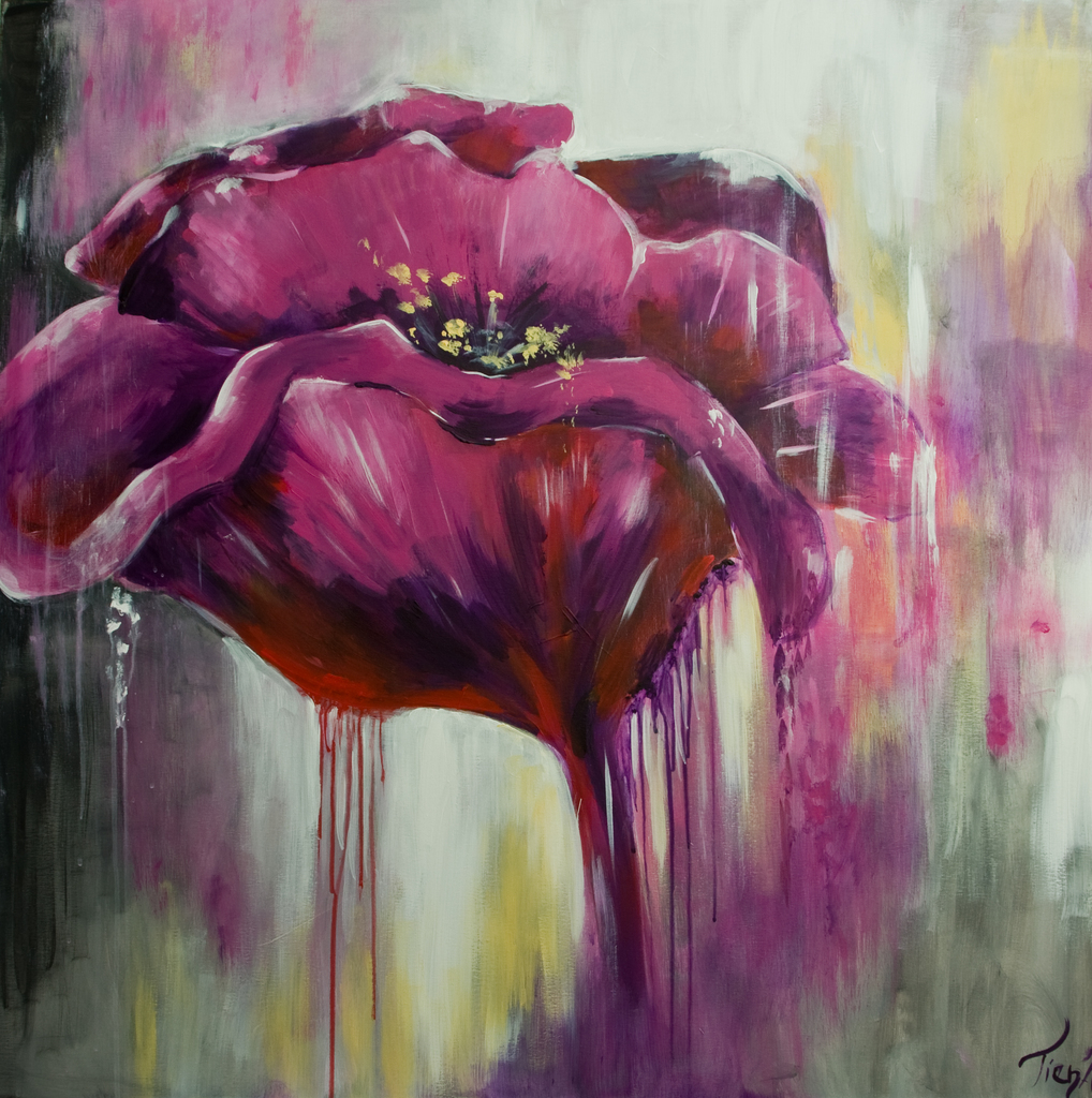 Lila koningin. Prachtig geabstraheerd werk in acryl in lila -tinten. In hedendaags interieur een echte blikvanger. .