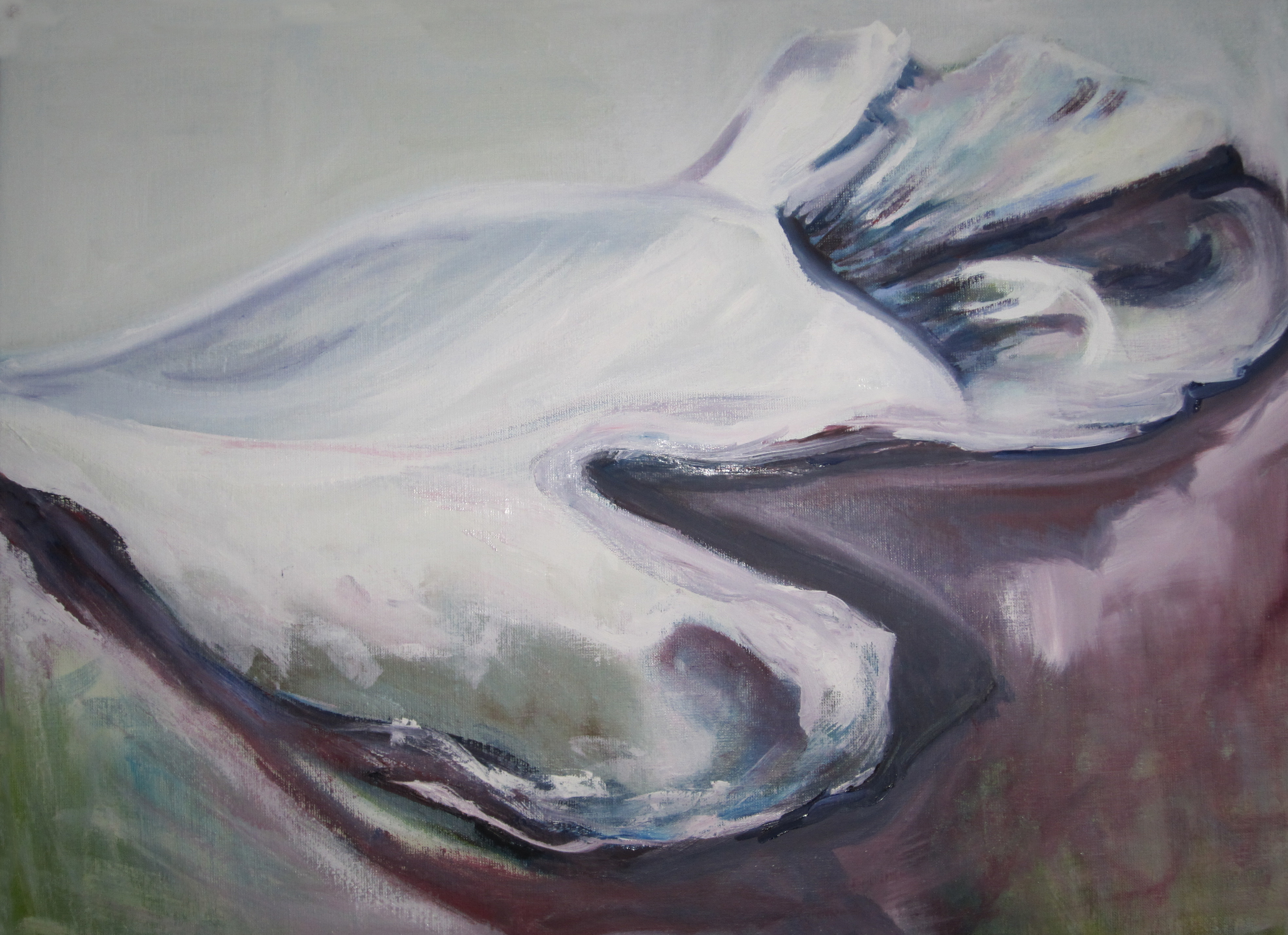 Dit schilderij laat de kwetsbaarheid zien van het blad van de pioenroos. Door het gebruik van zachte tinten wordt dit extra benadrukt.