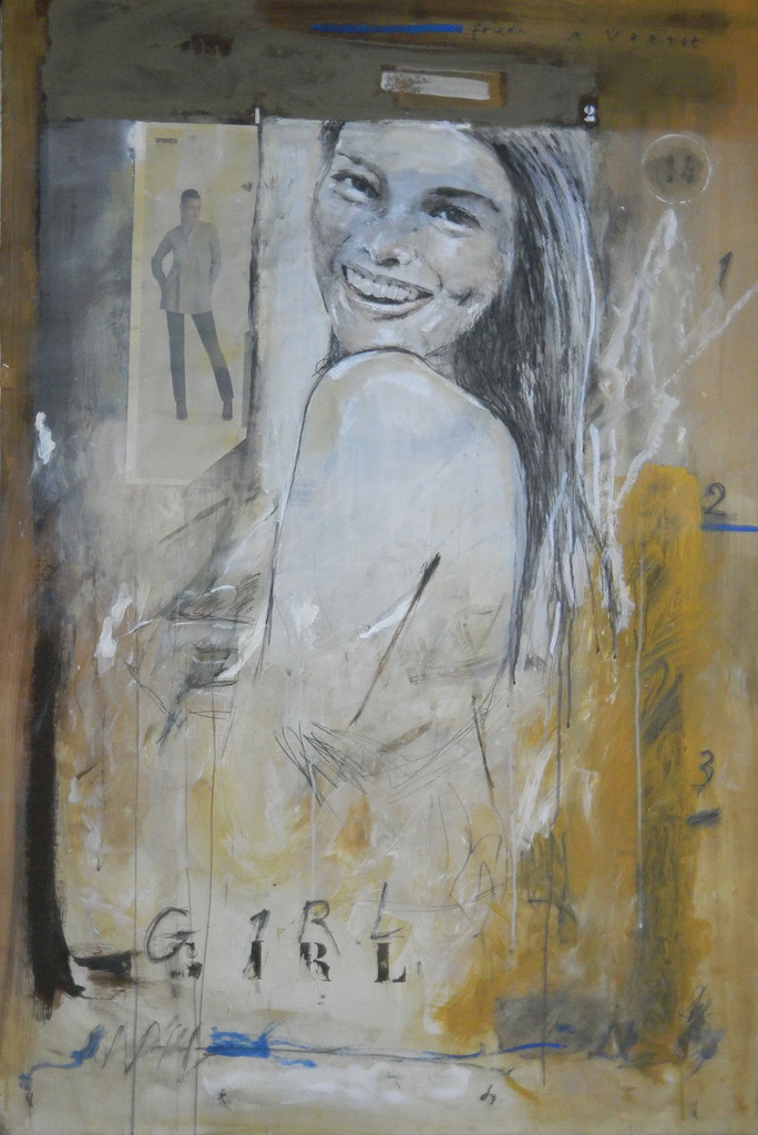 Ik woon en werk in Noord Italie,in het bergdorp Garzeno boven het Como-meer. Mijn schilderijen kenmerken zich door een combinatie van figuratie en abstractie. Grafische elementen, foto's, tekst,collages van stukken krant vormen een essentieel onderdeel van de totale compositie.