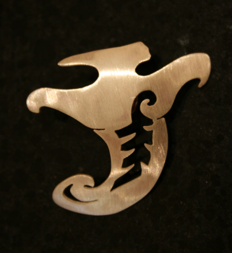 Zilveren sieraad (broche) geïnspireerd op de beeldtaal van Fredrik K.B., beeldhouwer