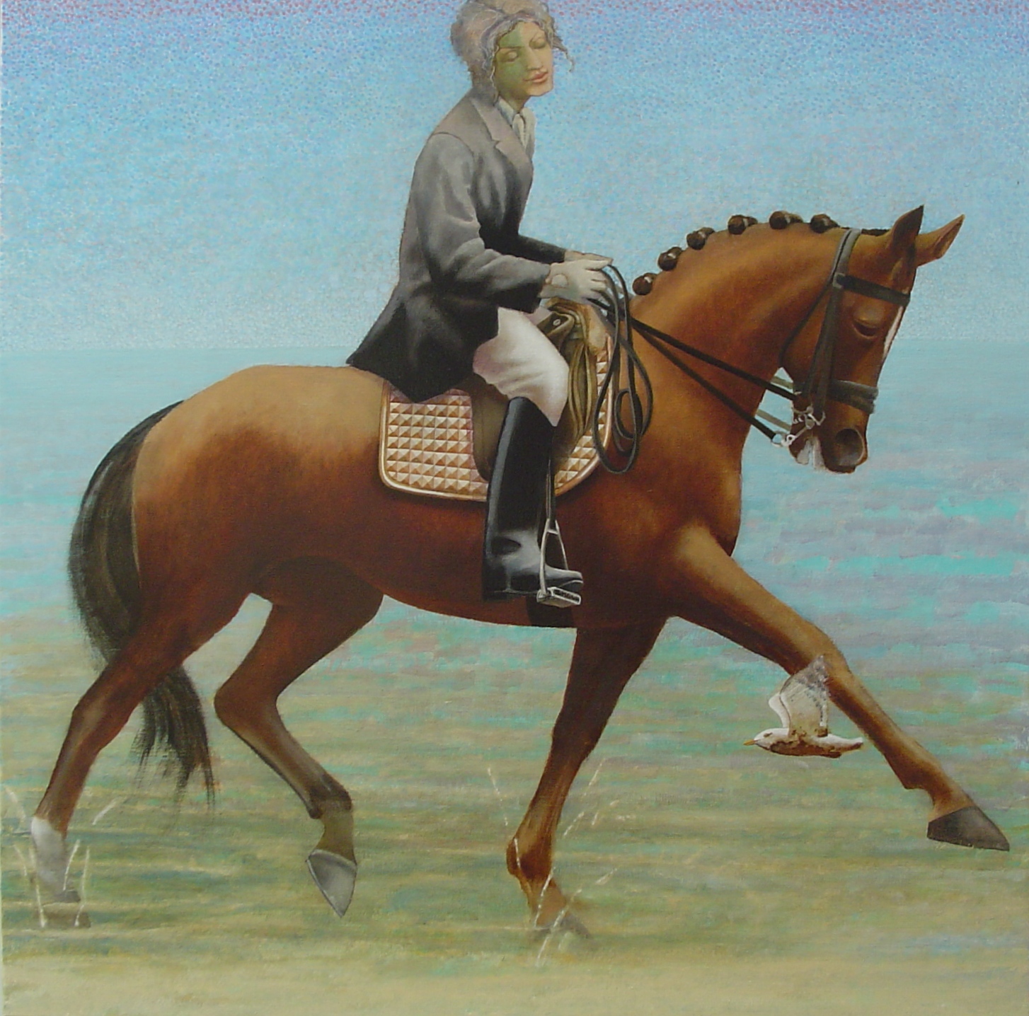Paard langs de vloedlijn met vogel