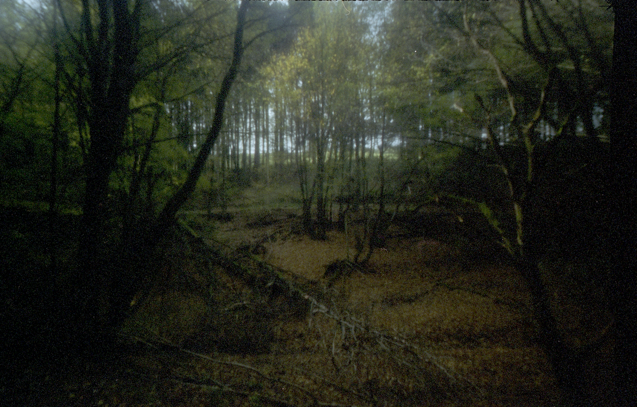 Pinhole foto, gemaakt met een kartonnen doosje, op kleinbeeld negatief. Belichtingstijd 3 seconden.