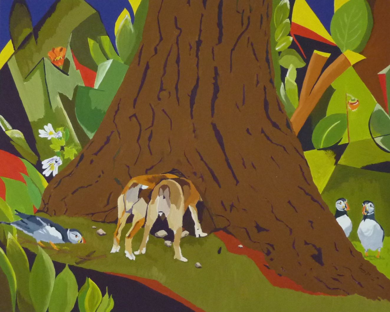 Dit is het derde werk uit een serie van drie, dat gaat over de jacht van de lundehund op de papegaaiduiker.
