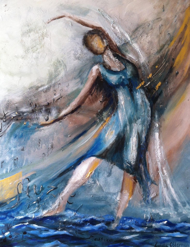 Muze. Griekse godinnen van kunsten (en muziek). Muziek zet alles aan in je lijf tot bewegen, gaat dwars door je heen. Een gouden stroom.