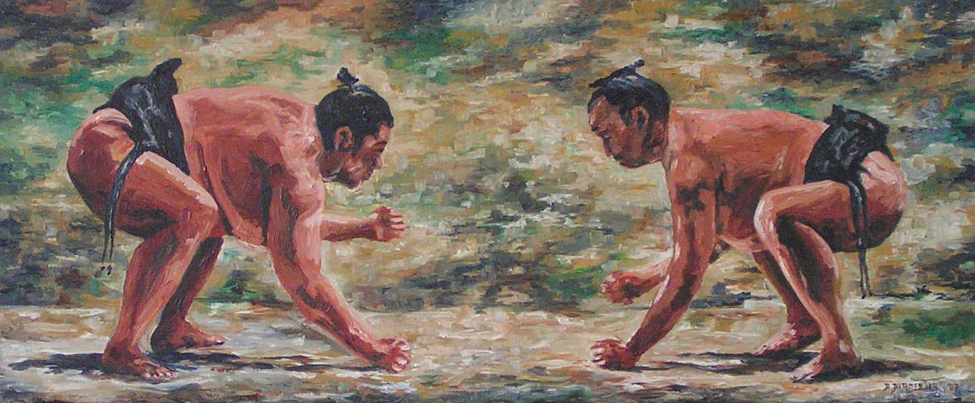 Schilderijen Schilderij Modern Realistisch Worstelaars Sport
