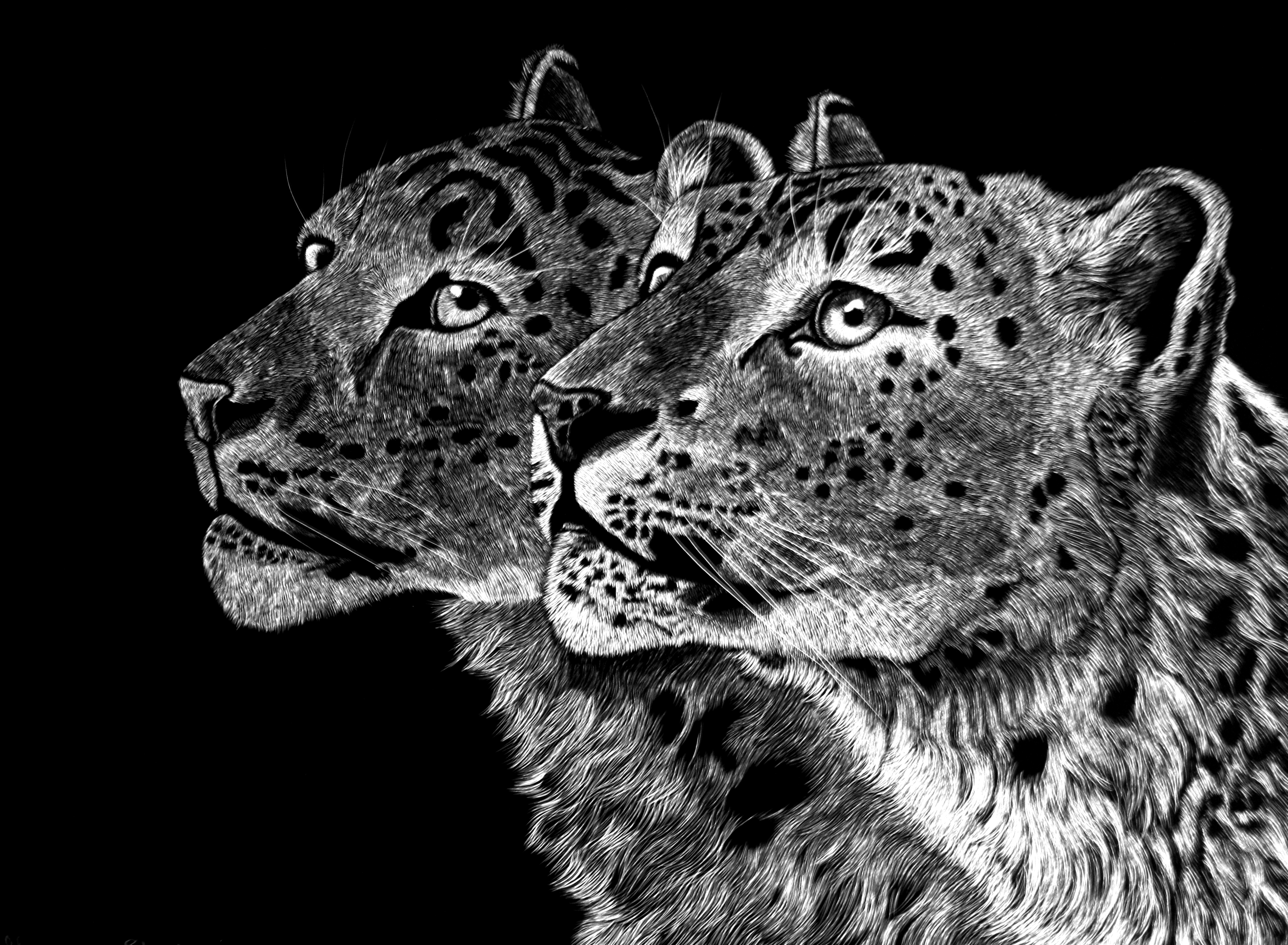 Sneeuwpanters Unica unica. Gravure in Oost-Indische inkt. Foto van de gravure op aanvraag beschikbaar via de tab contact. Gravure te koop.