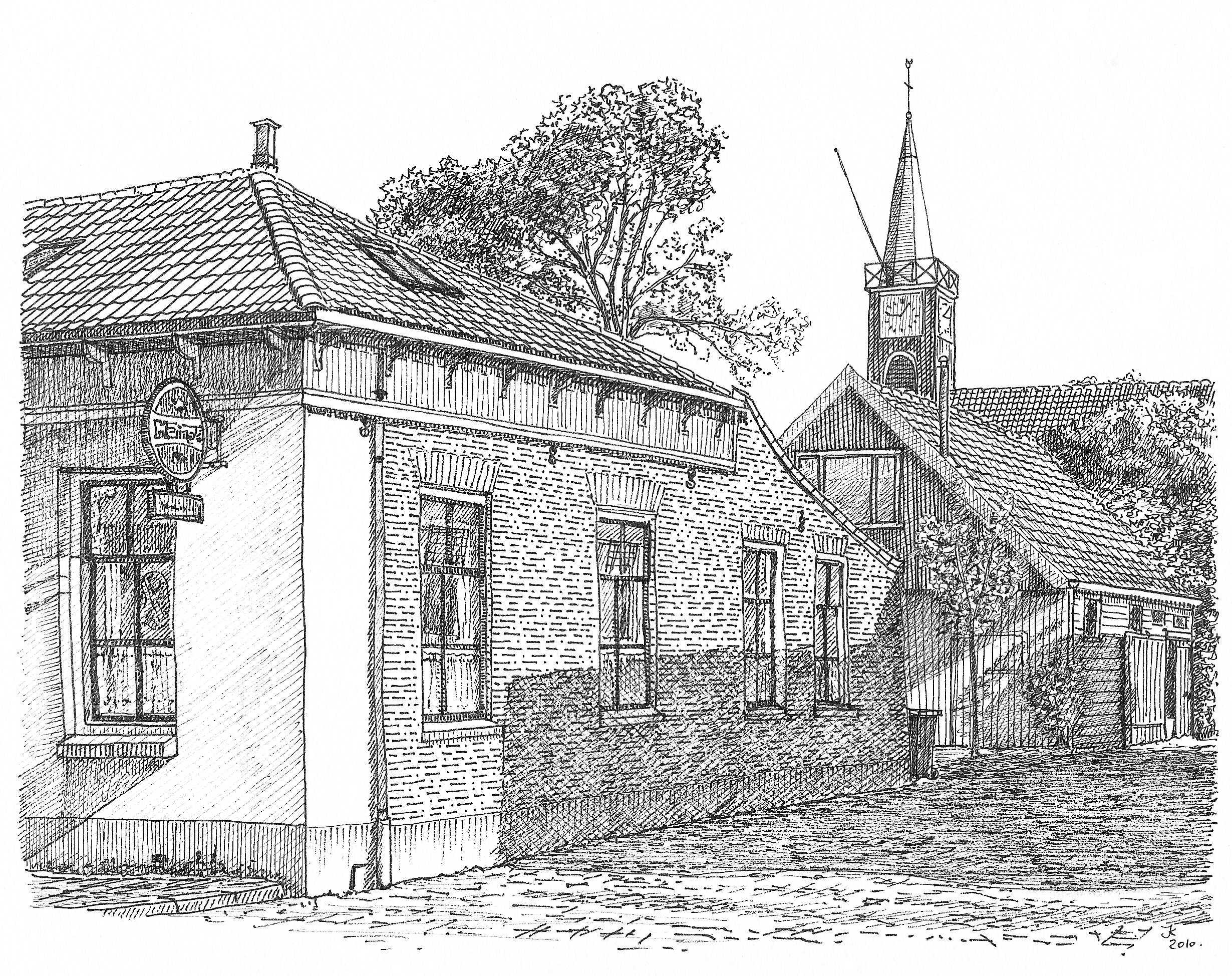 Pentekening Mooriaanshoofd Wormer Herberg Koetshuis Kerk Straatje Pendrawing Ink Old Inn Coachshed Church Street