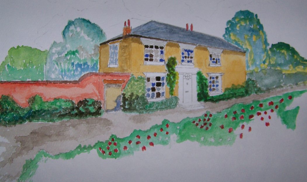 Aquarel op papier " Engels landhuis " VERKOCHT