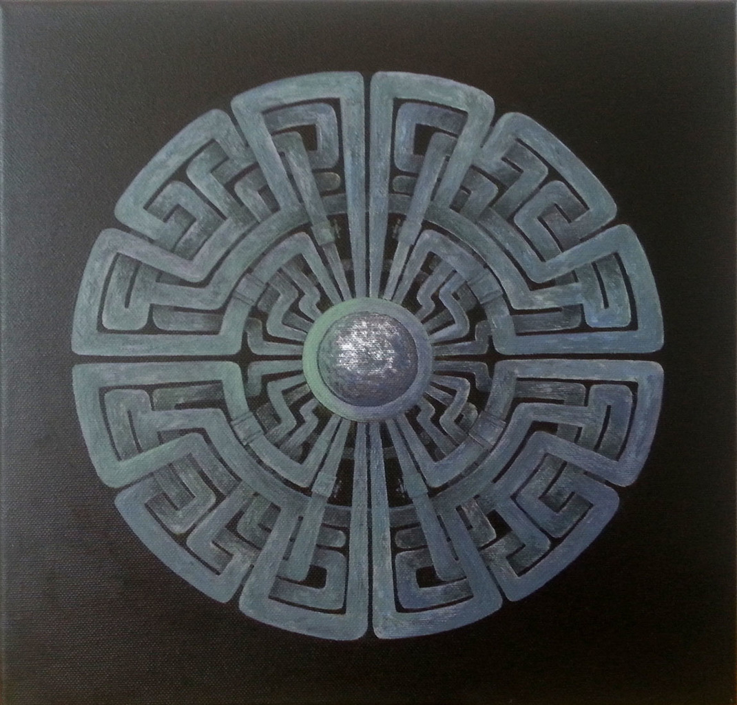 De cirkel is doolhof achtig - er is geen enkel correct pad, maar velen. En geen enkel pad is beter dan een ander, maar ze zijn allemaal nodig voor dit specifieke weergave. Inspiratie voor dit werk is het doolhof of labyrint, maar ook neurale netwerken en mechanische netwerken. Het vertegenwoordigd onze moderne tijd, waar mens en machine steeds meer verweven raken.