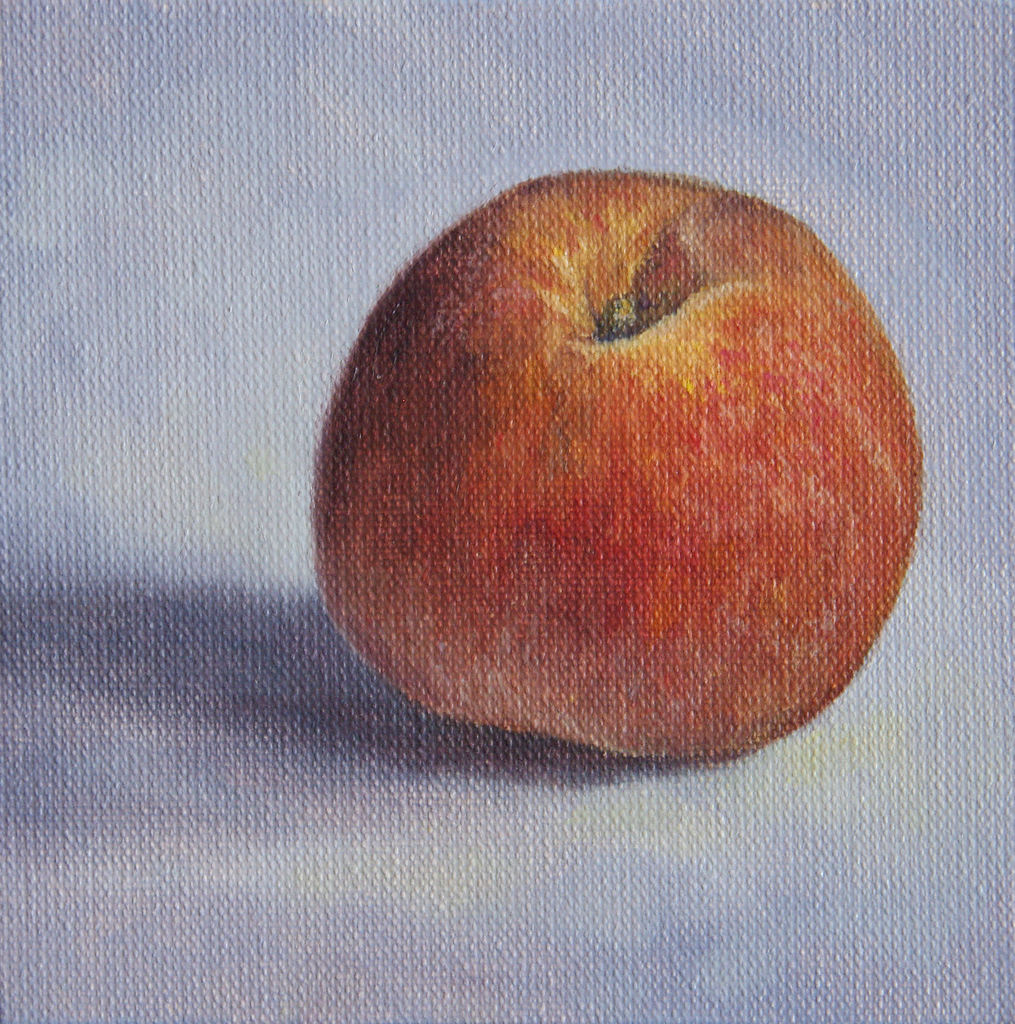 Stilleven van perzik, 10x10 cm. Verkocht.
