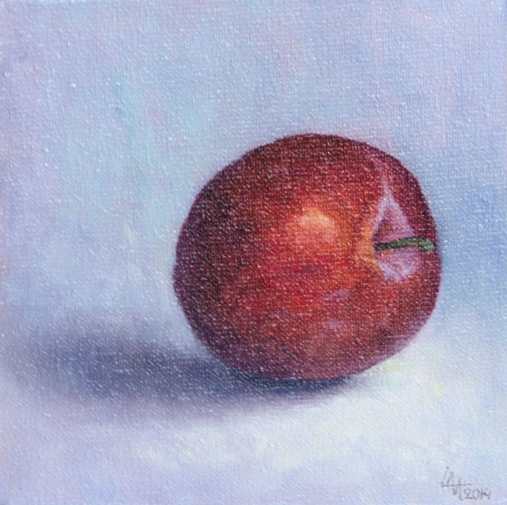 Stilleven van pruim, 10x10 cm. Verkocht.