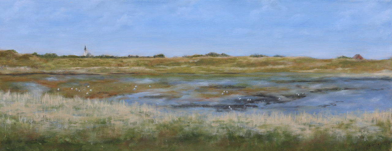 Olieverf Texel Mokbaai Kwelders Water Luchten Kerkje