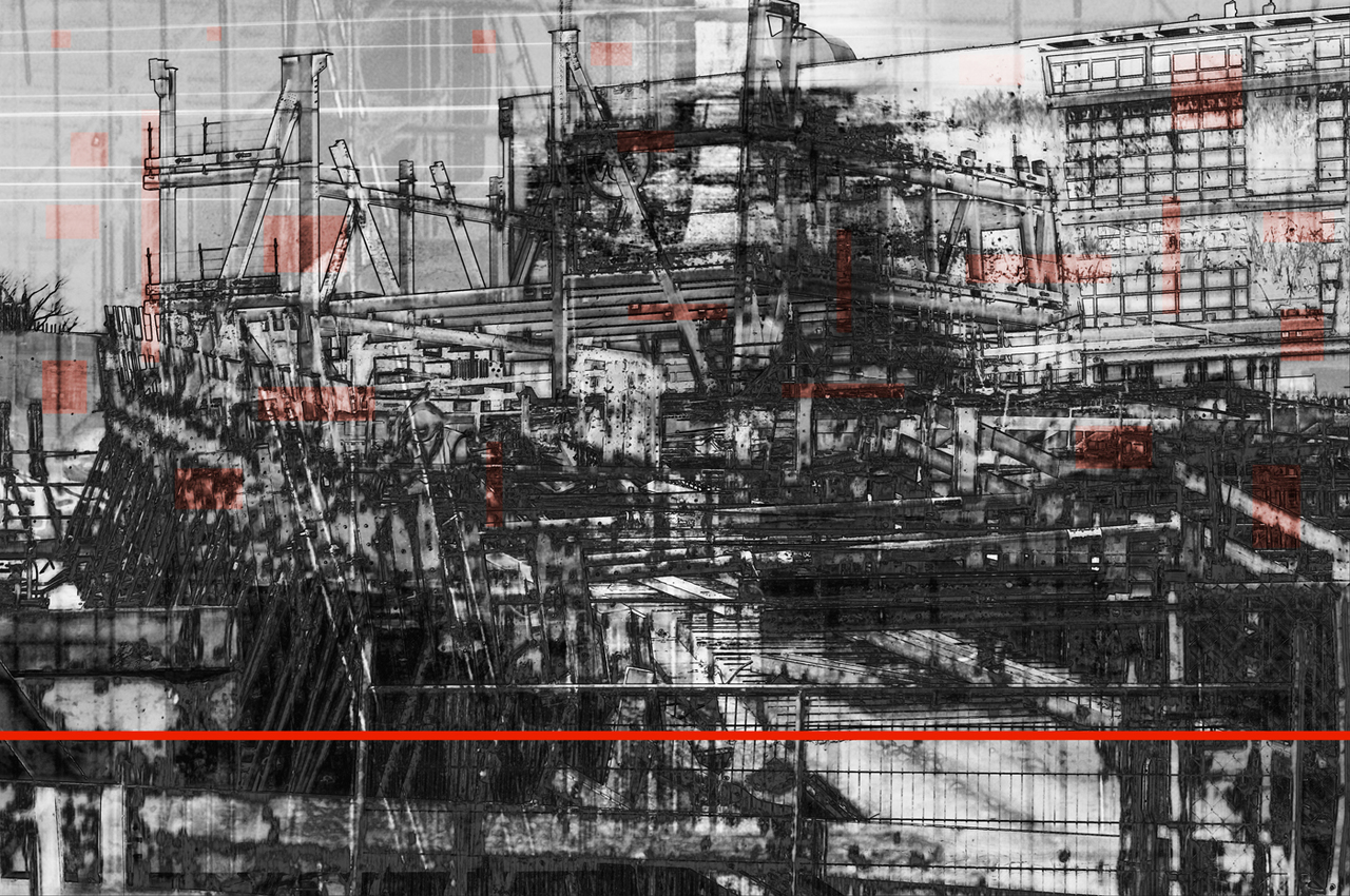 Rood Natuur Mens Grafiek Architectuur Verval Bouwen Geometrisch Organisch Omgeving Digitale Stop Biënnale Pulchristudio Etstechniek Rodelijn Tentoonstellingswerk Hedendaagsekunst Contemporaryart Stedenbouw