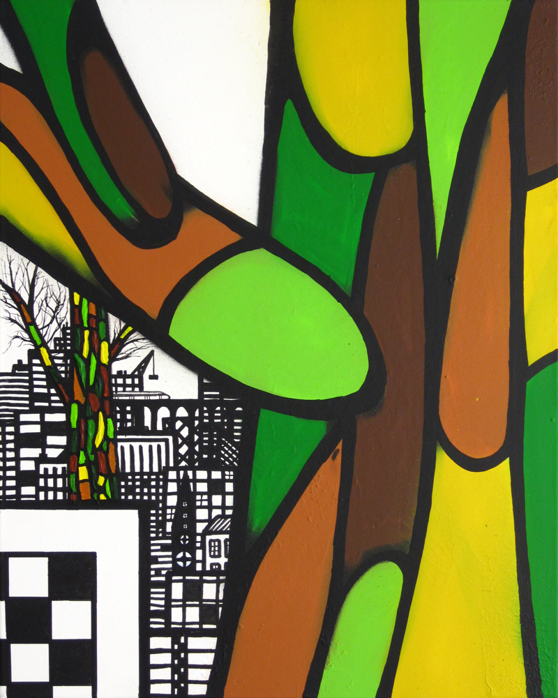 Concrete Jungle_09. Contrast tussen cultuur en natuur. 3D doek dus geen lijst nodig.