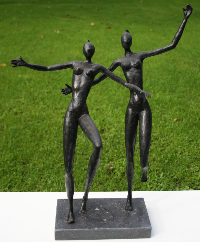 Twee vrouwen die extra dun zijn weer gegeven, met alles jubelend omhoog: de tenen, borsten en neuzen. Oplage 8 stuks