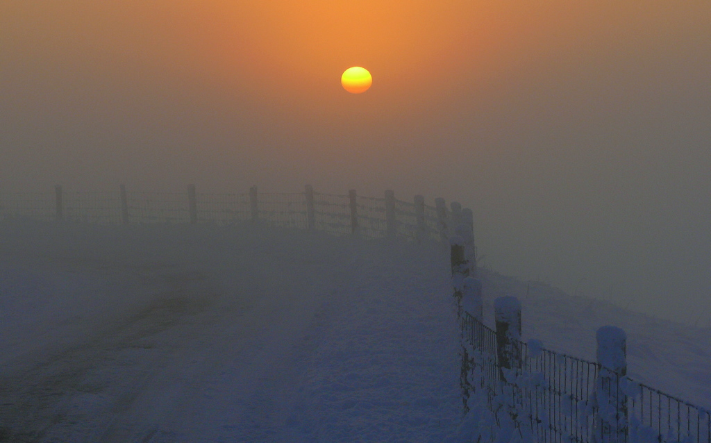 De duisternis valt over het winterse land van de Westfriesedijk. Er komt een ijzige damp uit zee opzetten en vormen worden langzaam uitgewist. Alleen de paaltjes bieden houvast.