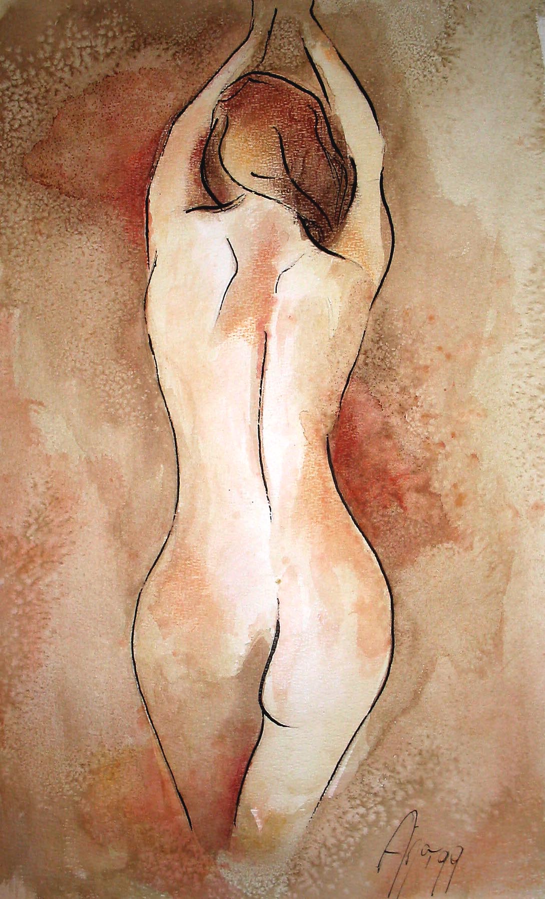 naakt, aquarel en pastelkrijt