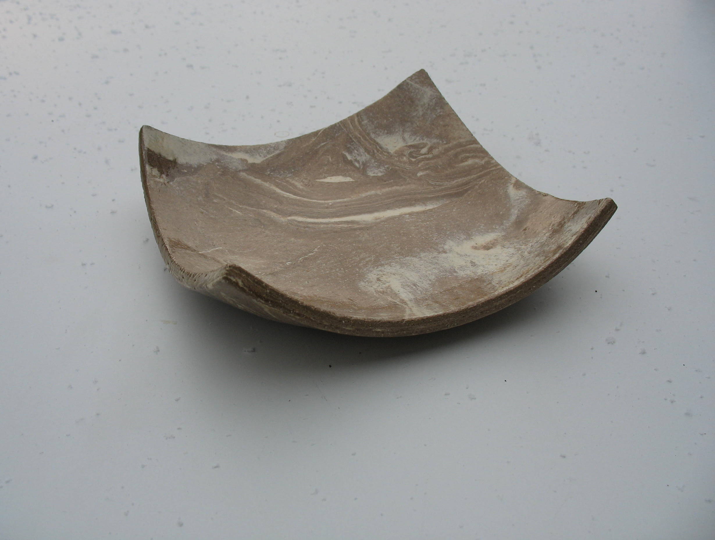 vierkant schaaltje gemaakt van 2 kleuren klei.