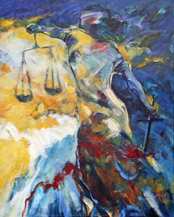 Vrouwe Justitia Blauw Geel