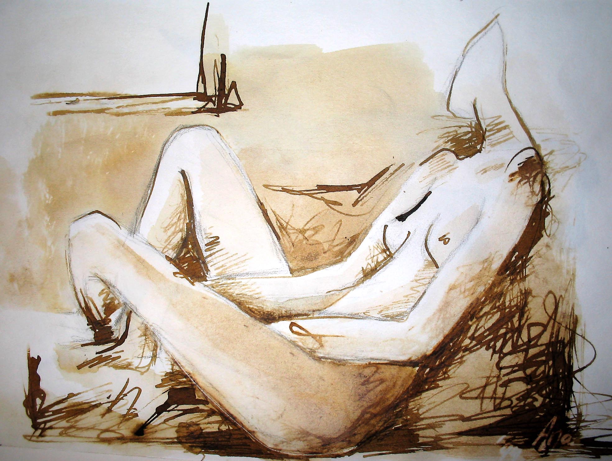Naakt Licht Model Tekening Inkt Sepia