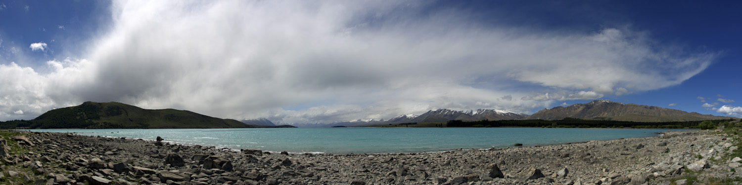 Panorama van Lake Tekapo, Nieuw Zeeland Oplage: 3 stuks Afdruk op fotopapier in zwarte lijst met gebroken witte passepartout Onderstaande maten zijn de afmetingen van de foto, niet de lijst. Deze foto is ook beschikbaar in andere maten tot maximaal 140x35cm (maten van foto, niet lijst)