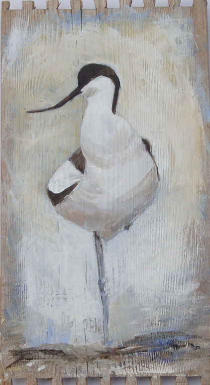 Wit Strand Grijs Vogel Gemengde Techniek Natuur Eiland Wad Kluut Mixed-media Avocet